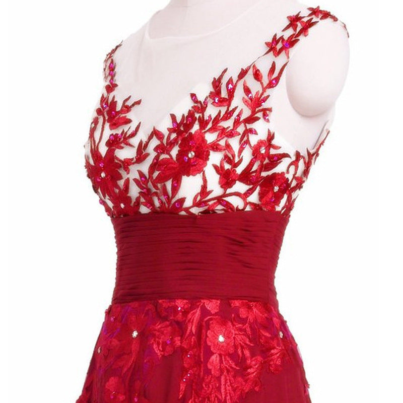 Blue Lace Flower Mirror Backless Wedding Bride Bridal Gown Dinner Party Stage Host Dress