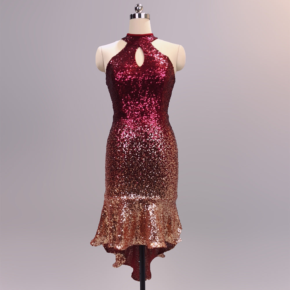 Chest Wrap See-through L Gradient Sequin Hip Wrap Dress