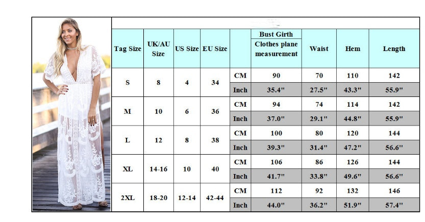Deep V-neck Short Sleeve Lace Perspective Tight-Sleeve Dress Maxi Dress