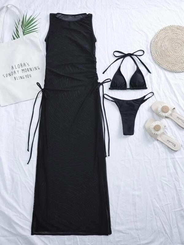 Sun Protective Blouse Bikini Beach Skirt Three Piece Swimsuit