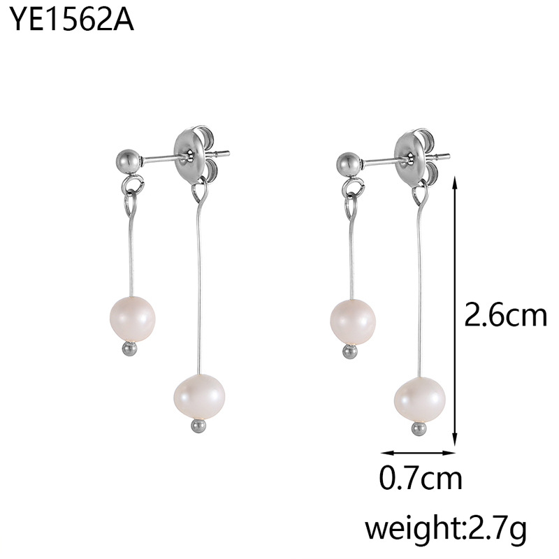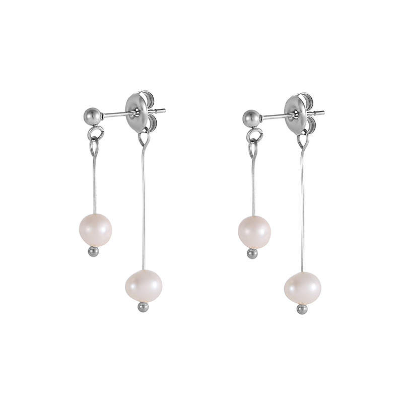 Natural Freshwater Pearl Double Eardrops Stud Earrings Stainless Steel